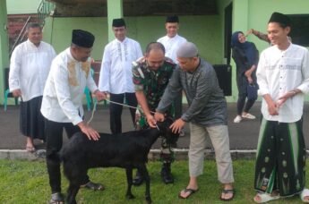 Kota Serang – Usai pelaksanaan ibadah Sholat Idul Adha, Komandan Kodim (Dandim) 0602/Serang Kolonel Inf Mulyo Junaidi didampingi Kepala Staf Kodim (Kasdim) 0602/Serang Letkol Inf Agus Praminto dan Perwira Staf, menyerahkan langsung hewan kurban untuk Pondok Pesantren (Ponpes) Riadul Awamil dan diterima langsung oleh pimpinan Ponpes KH Safrudin, bertempat di Lapangan Fatahillah Makodim 0602/Serang Kecamatan Cipocok Jaya Kota Serang Provinsi Banten, Senin (17/06/2024).