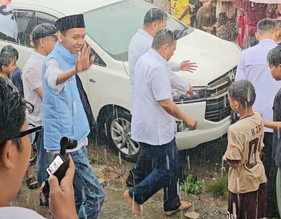 Meski diguyur hujan, semangat Andra untuk meyakinkan masyarakat agar memilihnya di Pemilihan Gubernur Banten tidak luntur. Dari rumah ke rumah Andra menyapa warga yang sudah berkumpul menunggunya.