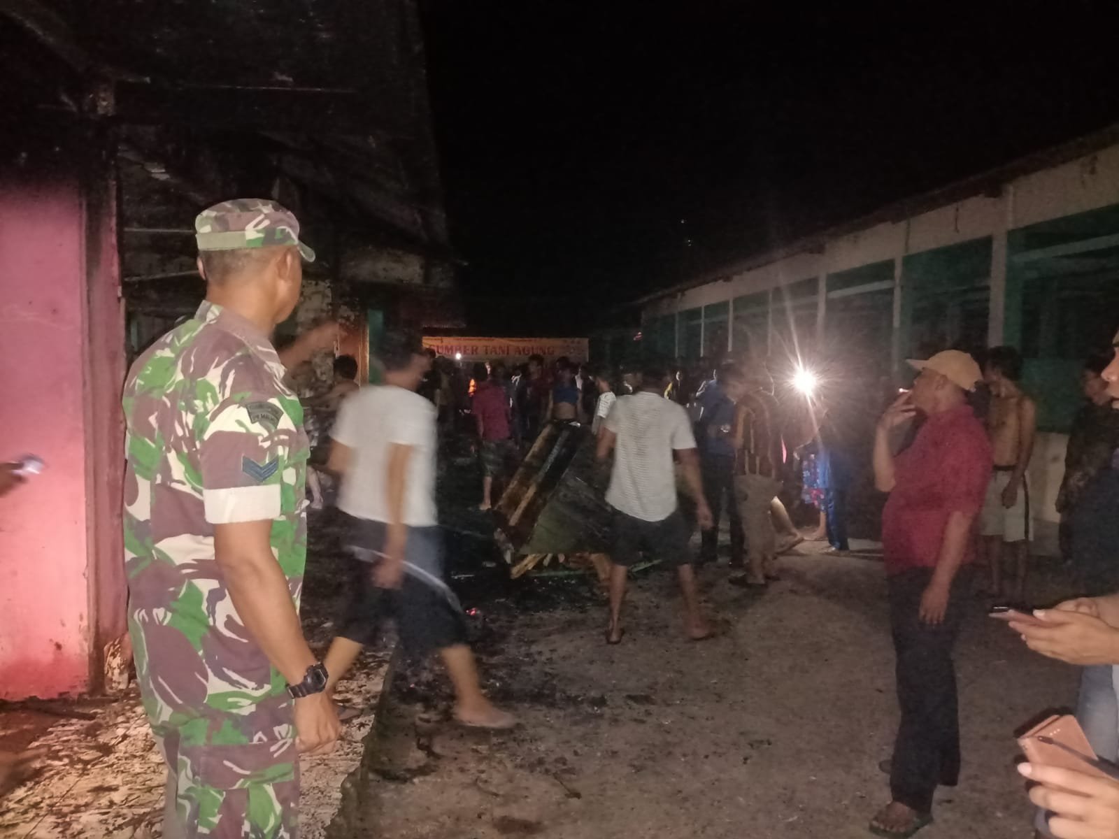 “Ke empat kios yang terbakar semuanya milik H. Maskanah, dua kios tidak bisa diselamatkan beserta isinya, akan tetapi dua kios lainnya masih bisa diselamatkan walaupun sebagian barang ikut terbakar, “terang saksi.