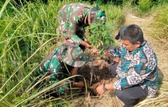 Kota Serang ( KV) – Bintara Pembina Desa (Babinsa) Babinsa Koramil 0602-04/Taktakan Kodim 0602/Serang Sersan Satu (Sertu) Gaspar, melaksanakan penanaman 25 pohon bibit buah bantuan dari Dinas Pertanian Kota Serang, dilahan milik warga yang telah terbakar agar menjadi bermanfaat, bertempat di Linkungan Majalawang Kelurahan Umbul Tengah Kecamatan Taktakan, Kota Serang Provinsi Banten, Minggu (09/06/2024).