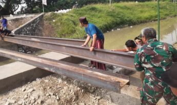 Serang, (KV) – Bintara Pembina Desa (Babinsa) Koramil 0602-10/Pontang Kodim 0602/Serang Sersan Satu (Sertu) Sabar Widodo, bersama warga melaksanakan kegiatan kerja bakti pembangunan jembatan guna mempermudah akses jalan, bertempat di Kampung Ragas Desa Bolang Kecamatan Lebak Wangi Kabupaten Serang, Provinsi Banten, Minggu (02/06/2024).