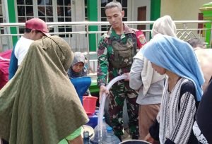 Alhamdulilah saat penyaluran air bersih tidak ada kericuhan, masyarakat tertib menungunggu antrian. kita bagi Setiap masyarakat mendapatkan air bersih 2 galon air tiap keluarga,” tutup Danramil.
