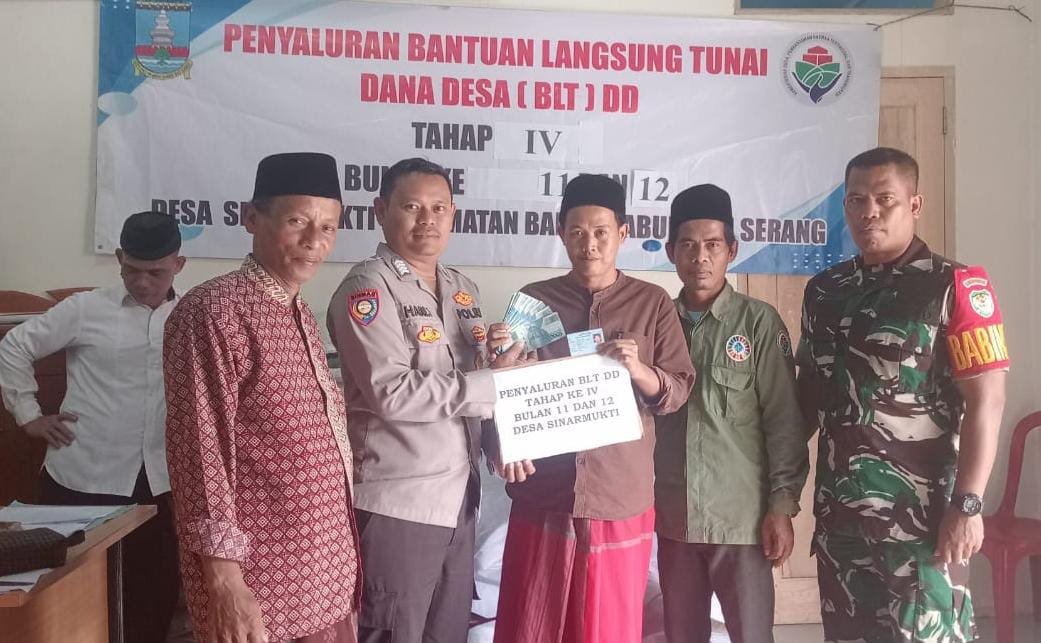 Babinsa Koramil 0602-15/Baros Dan Bhabinkamtibmas Dampingi Kades Sinamukti Serahkan BLT-DD Tahun 2024
