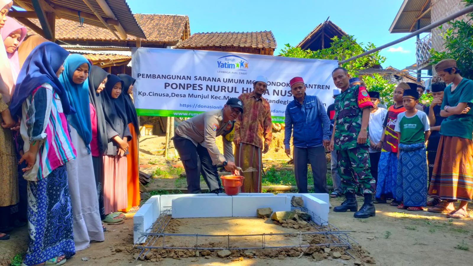 Kegiatan Peletakan batu Pertama di hadiri, KH. Mahpudin (Pengurus Ponpes Nurul Huda Nusa), H. Rosid Saputra (Relawan Laznas Rumah Yatim Arohman Indonesia), BRIPKA Arif Supratman, SH (Bhabinkamtibmas), Sertu Iwan Hermawan (BABINSA), Santriawan & Santriwati Ponpes Nurul Huda Nusa