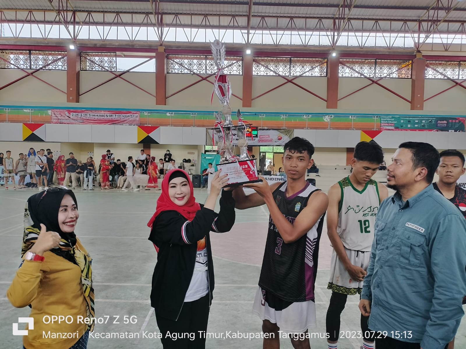 Tanggamus–klikviral.com.Bupati Tanggamus Hj. Dewi handajani, SE. MM Menghadari sekaligus Menutup Kompetisi Basket Ball “Bupati Cup” di Gor Ratu Pekon Kota agung Sabtu (29/07/23).