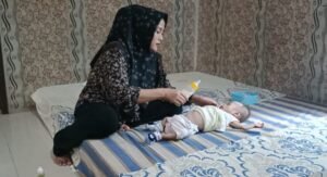 Ia pun mengaku belum mengetahui penyakit apa yang ada pada tubuh anaknya, karena saat ini ia hanya bisa berkonsultasi dengan bidan setempat.