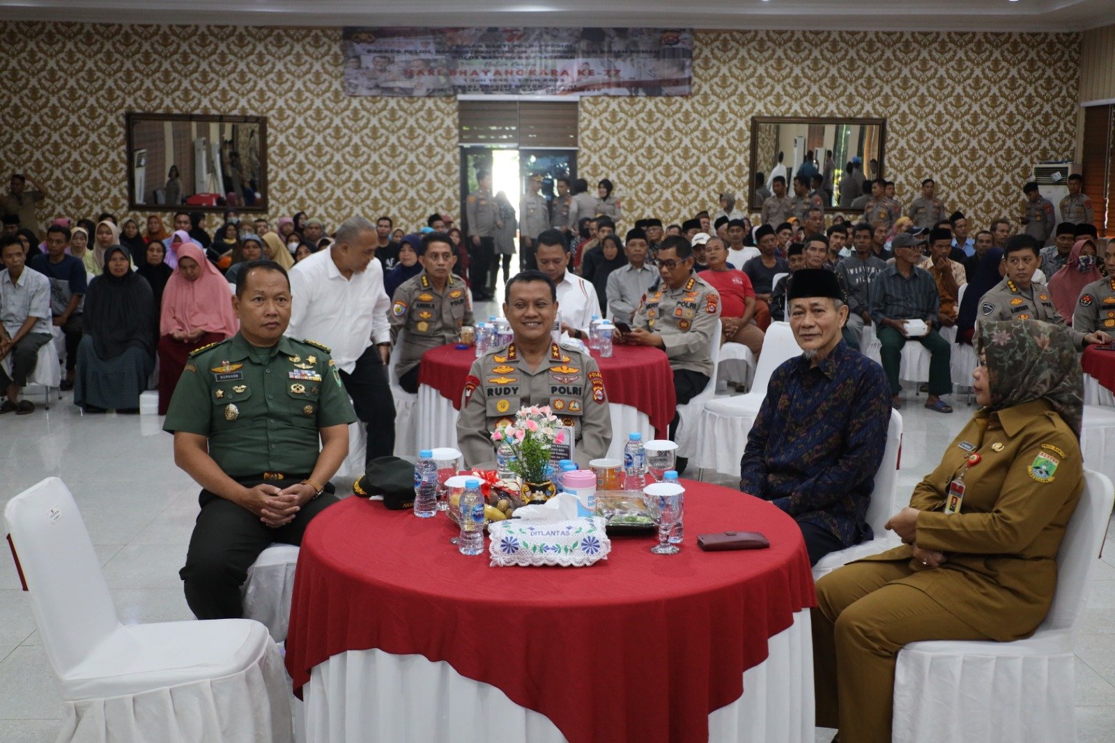 Serang, klikviral.com – Kapolda Banten Irjen Pol. Prof. Dr Rudy Heriyanto hadiri serta ikuti Bulan Bakti Polri Presisi Bakti Sosial (Baksos) Religi, Bantuan Sosial (Bansos), Penyediaan Air Bersih, dan Bedah Rumah Polda Banten dan Jajaran Dalam Rangka Hari Bhayangkara Ke 77 yang dilaksanakan di Aula Serbaguna Polda Banten pada Senin (19/06) pukul 09.00 Wib.