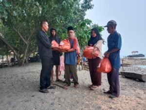 Penyerahan sembako di Pantai Losari Dermaga saka Batu Balai Pekon Sukabanjar Kecamatan Kota Agung Timur.