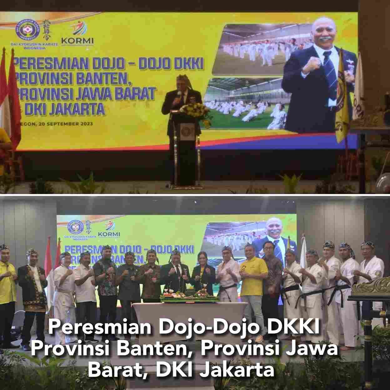 Cilegon —Dai Kyokushin Karate Indonesia (DKKI) menggelar acara Peresmian Dojo-dojo (tempat latihan) di Provinsi Banten, Jawa Barat dan DkI Jakarta. Acara bertempat di Ballroom Hotel Aston Cilegon dirangkai dengan pelantikan dan Penyerahan SK Kepengurusan Provinsi Jawa Barat dan DKI Jakarta Selasa (20/09/23)