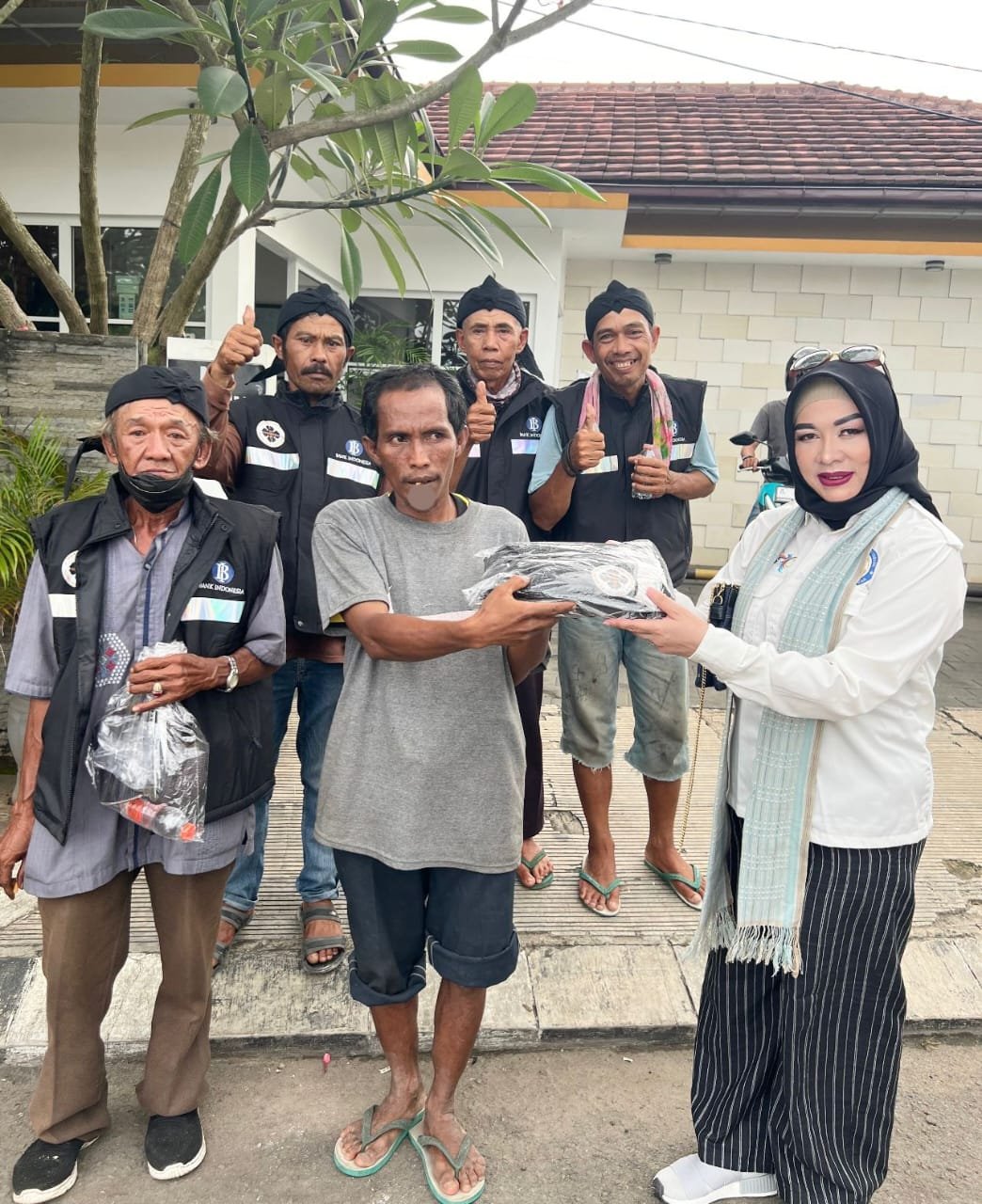 LEBAK, klikviral.com -Ketua PHRI Lebak, Hj. Rosna Gustina Rahayu memberikan secara simbolis seragam sebagai simbolis becak wisata berupa Lomar dan Rompi khusus becak wisata kepada perwakilan Paguyuban Tukang Becak Wisata, di Balong Rangkasbitung.