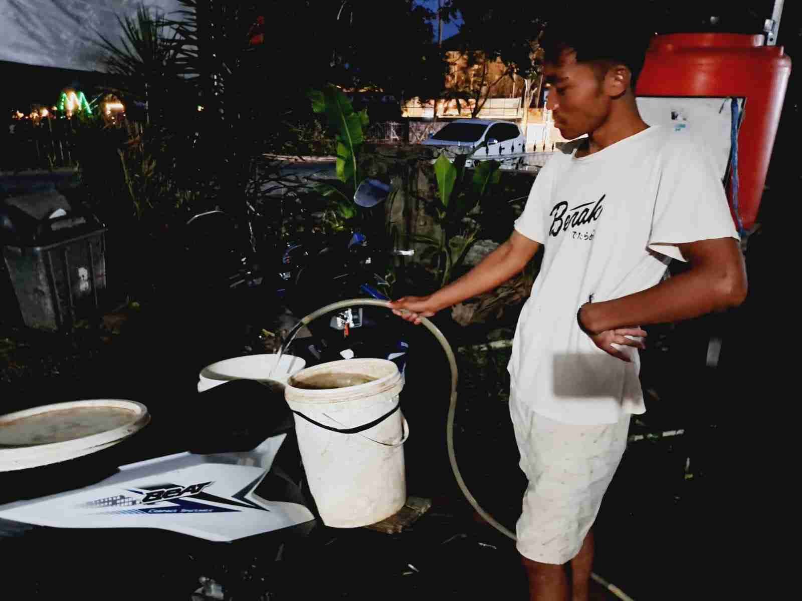 “Ya sekali saja (mandi). Waktu sore begitu kita mandi. Ya untuk ngirit air juga,” kata Rukiyah (65), warga Desa Tanjungjaya Kecamatan Panimbang Selasa (3/10/2023)