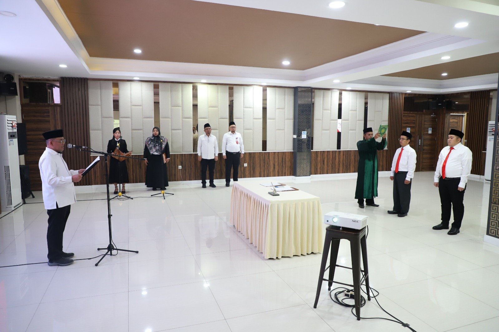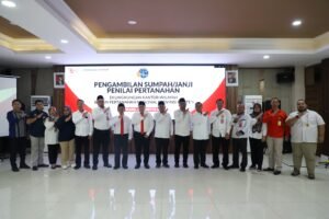 SERANG – Sebanyak dua orang Penilai Pertanahan Bidang Jasa Penilaian Properti Sederhana resmi diambil sumpahnya oleh Kepala Kantor Wilayah Badan Pertanahan Nasional (BPN) Provinsi Banten, Sudaryanto, di Aula Baduy Kantor Wilayah BPN Provinsi Banten, Rabu (21/08/2024).