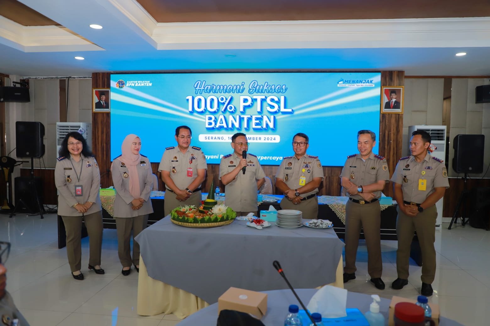 Bersyukur target PTSL dapat rampung seluruhnya, Kepala Kantor Wilayah Badan Pertanahan Nasional (BPN) Provinsi Banten, Sudaryanto menggelar Tasyakuran Harmoni Sukses 100 persen PTSL Banten di Aula Baduy Kantor Wilayah BPN Provinsi Banten, Senin (16/12/2024).