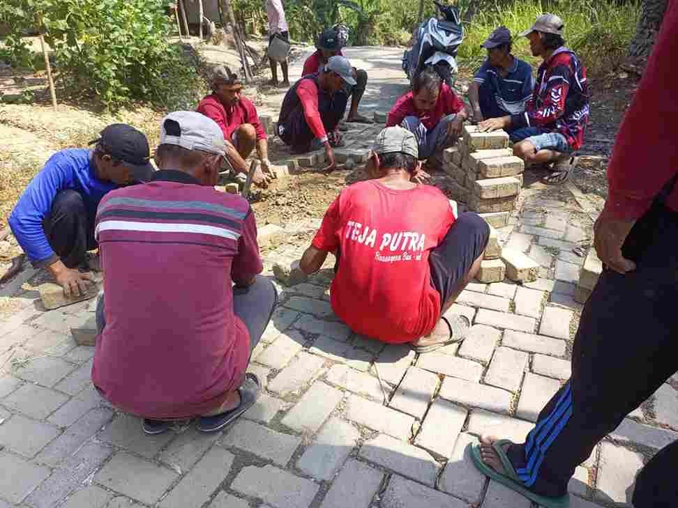 Selain membersihkan saluran air (Drainase), badan jalan, mereka juga antusias gotong royong memperbaiki jalan lingkungan memasang paving blok.