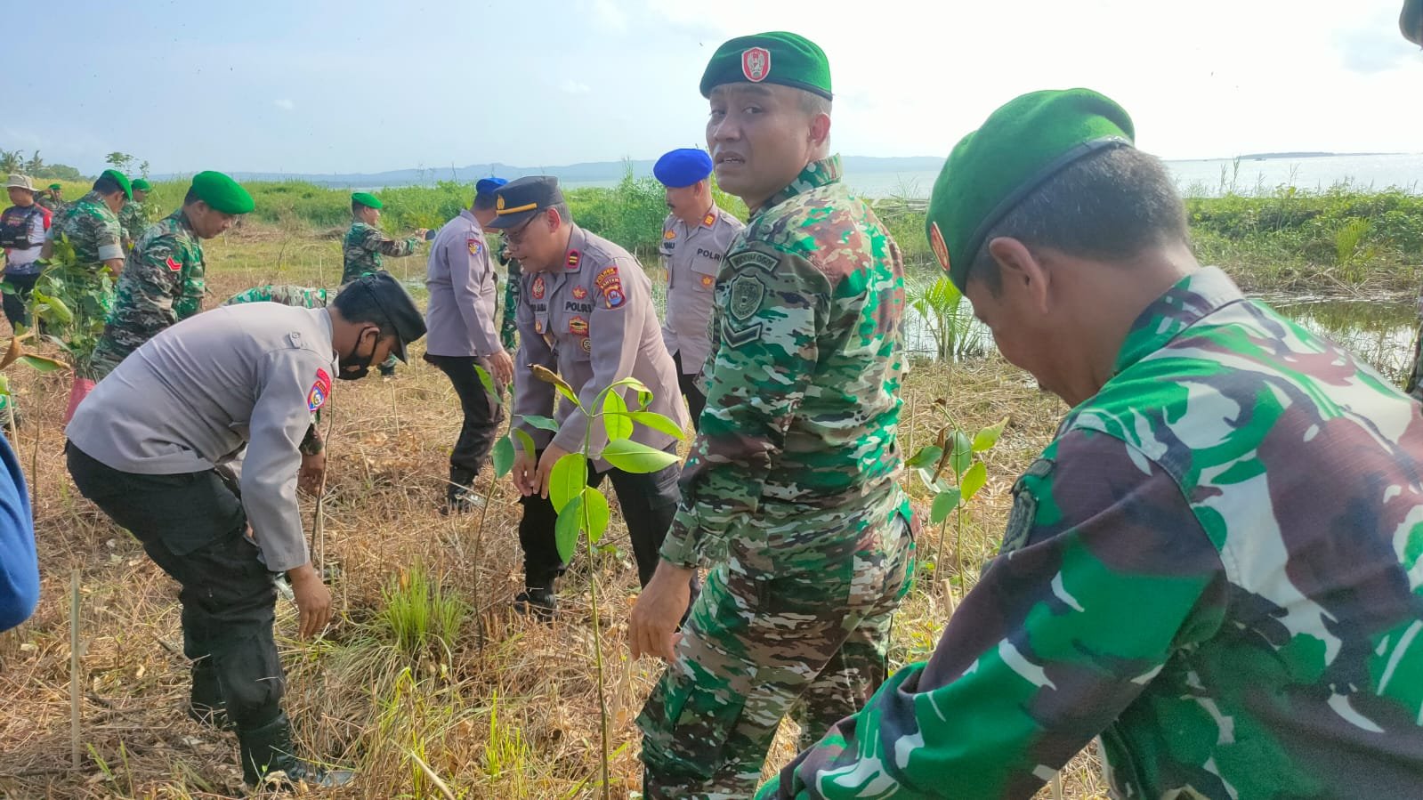PANDEGLANG, klikviral.com – Kepolisian Resort Pandeglang bersama Kodim 0601/Pdg di Kabupaten Pandeglang, melaksankan Penanaman Mangrove Nasional secara Serentak di Seluruh Indonesia, pada Senin (15/5/2023).