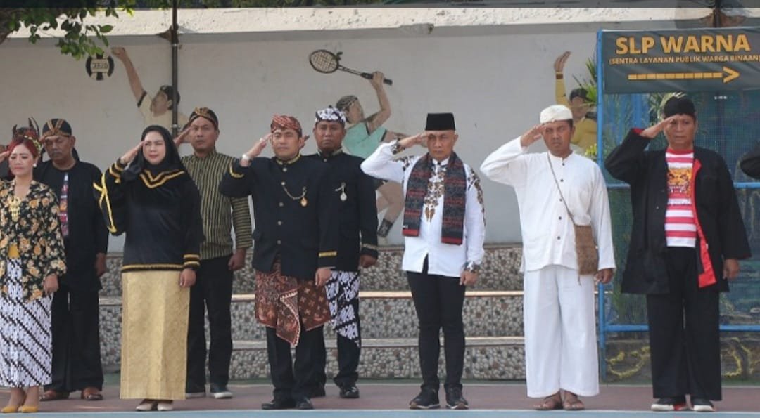 Dengan menggunakan pakaian adat, petugas Lapas Kelas I Madiun ikuti dengan khidmat setiap rangkaian upacara mulai dari penghormatan, pembacaan teks UUD 1945, hingga sambutan dari Presiden RI yang dibacakan langsung oleh Kalapas I Madiun Kadek Anton Budiharta selaku inspektur upacara