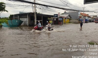 Januari 9, 2025Serang – Intensitas curah hujan tinggi sejak dini hari mengakibatkan debit air meluap hingga ke jalan...