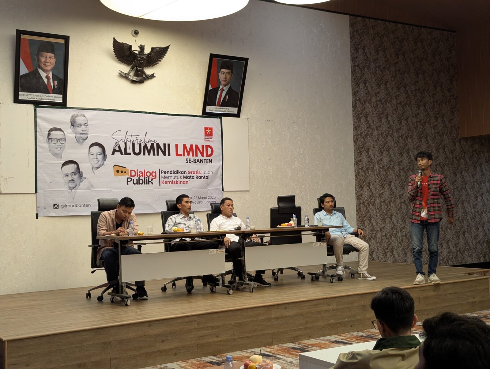 Mengangkat tema “Pendidikan gratis jalan memutus mata rantai kemiskinan”, acara dialog publik dan silaturahmi alumni LMND yang digelar di aula PUPR Provinsi Banten pada 22 Maret 2025 itu berlangsung meriah.