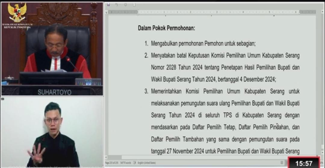 MK Mengabulkan Permohonan Pemohon Gugatan Pilkada Kabupaten Serang, Pemungutan Suara Ulang