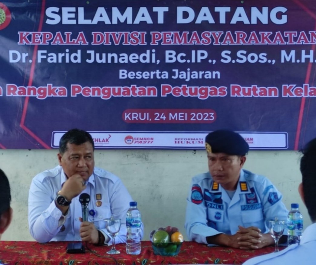 Krui-klikviral.com. – Rumah Tahanan Negara (Rutan) Kelas IIB Krui terima kunjungan Kepala Divisi Pemasyarakatan (KadivPAS), Dr. Farid Junaedi beserta jajaran dalam rangka memberikan penguatan tugas dan fungsi pegawai.