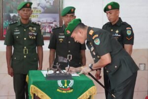 LEBAK — Komandan Korem (Danrem) 064/Maulana Yusuf, Brigjen TNI Fierman Sjafirial Agustus memimpin langsung upacara serah terima jabatan (Sertijab) Komandan Kodim 0603/Lebak dari pejabat lama Letkol Arh Erik Novianto kepada Letkol Inf Harbert Roby Parulian Sinaga serta tradisi satuan Korem 064/MY.