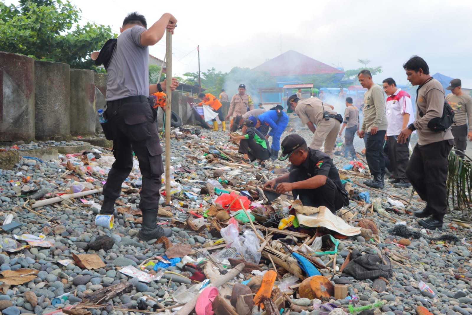 Polres Tanggamus Bersama Sejumlah Elemen Bersihkan Sampah di Tiga Pantai