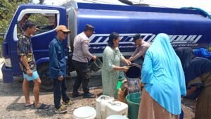 “Upaya yang kami lakukan dengan melakukan distribusi air bersih ke wilayah terdampak kekeringan dengan mendistribusi air bersih dengan menggunakan mobil tangki dari Pt.GMBI,” ucap Bripka Bhakti.
