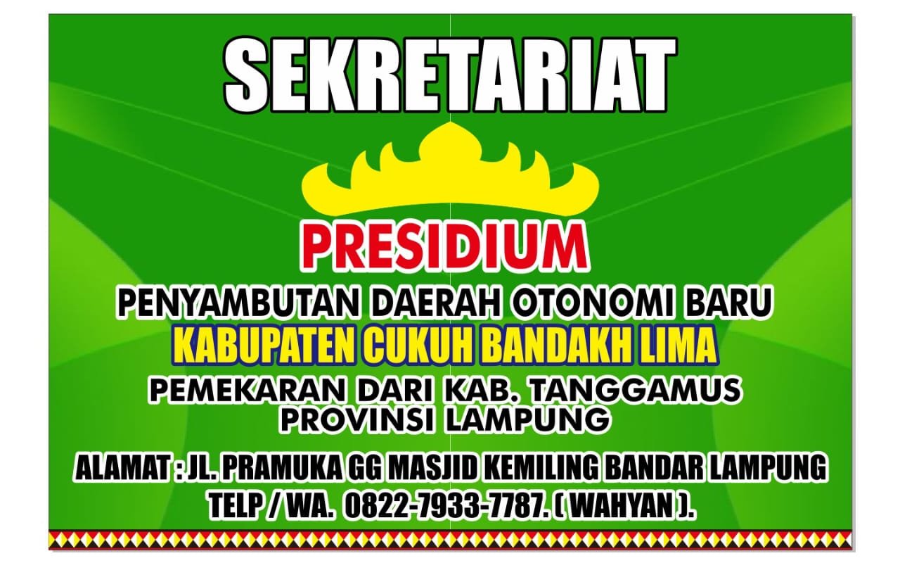 Presidium DOB Cukuh Bandakh Lima Apresiasi Kemenangan Pasangan Calon Gubernur dan Wakil Gubernur Lampung