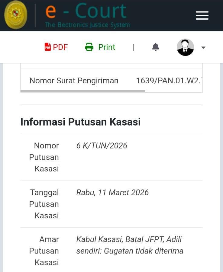 – Nomor Putusan Kasasi: 6 K/TUN/2026