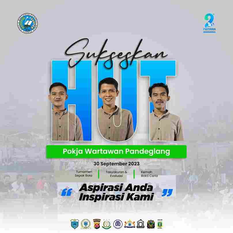 PANDEGLANG, klikviral.com – Dalam menyambut Hari Ulang Tahun (HUT) ke-2 Kelompok Kerja Wartawan (Porwan) Pandeglang akan diadakan berbagai kegiatan. Diantaranya Turnamen sepak bola, tasyakuran serta evaluasi dan camping ceria. Kegiatan tersebut akan dilakukan mulai dari tanggal 21-30 September 2023.