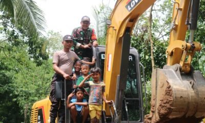 Ekskavator Jadi Tempat Bermain Anak – Anak Desa Bojong Pandan di Lokasi TMMD Ke-119 Kodim 0602/Serang