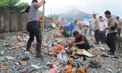 Polres Tanggamus Bersama Sejumlah Elemen Bersihkan Sampah di Tiga Pantai