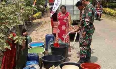 Anggota Koramil 0113/Cibaliung Bantu Salurkan Air Bersih