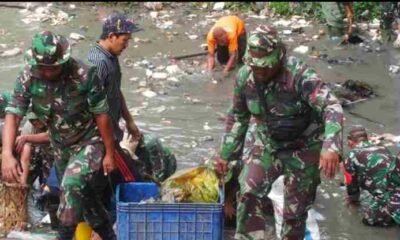 Sambut HUT TNI Ke 78, Kodim 0602/Serang Gelar Karya Bakti Pembersihan Sampah Di Sungai Cibanten