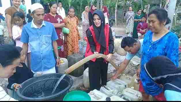 Teh Sarifah Turun Langsung Ke Masyarakat, Sambil Mendistribusikan Air Bersih Pada Warga