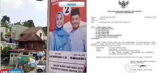 SERANG – Setelah tersebar kabar adanya dugaan penyalahgunaan wewenang jabatan Menteri pada acara kepentingan pribadi salah satu di Kabinet Merah Putih yang telah melakukan sebaran undangan pada kop surat Menteri Desa Dan Daerah Tertinggal, pada tanggal 21 Oktober tahun 2024 dengan Nomor: 19/UMM.02.03/X/2024, sifat: Penting, Hal Undangan Haul, Hari Santri dan Tasyakuran.
